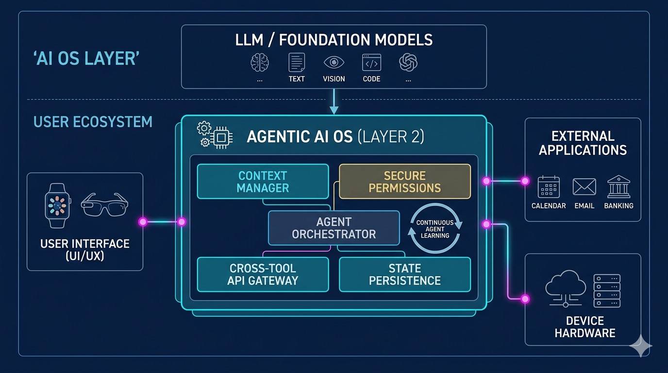 Now replace “apps” with “AI agents” and “hardware” with “tools, APIs, and data sources.” That’s exactly the gap the agentic operating system fills.